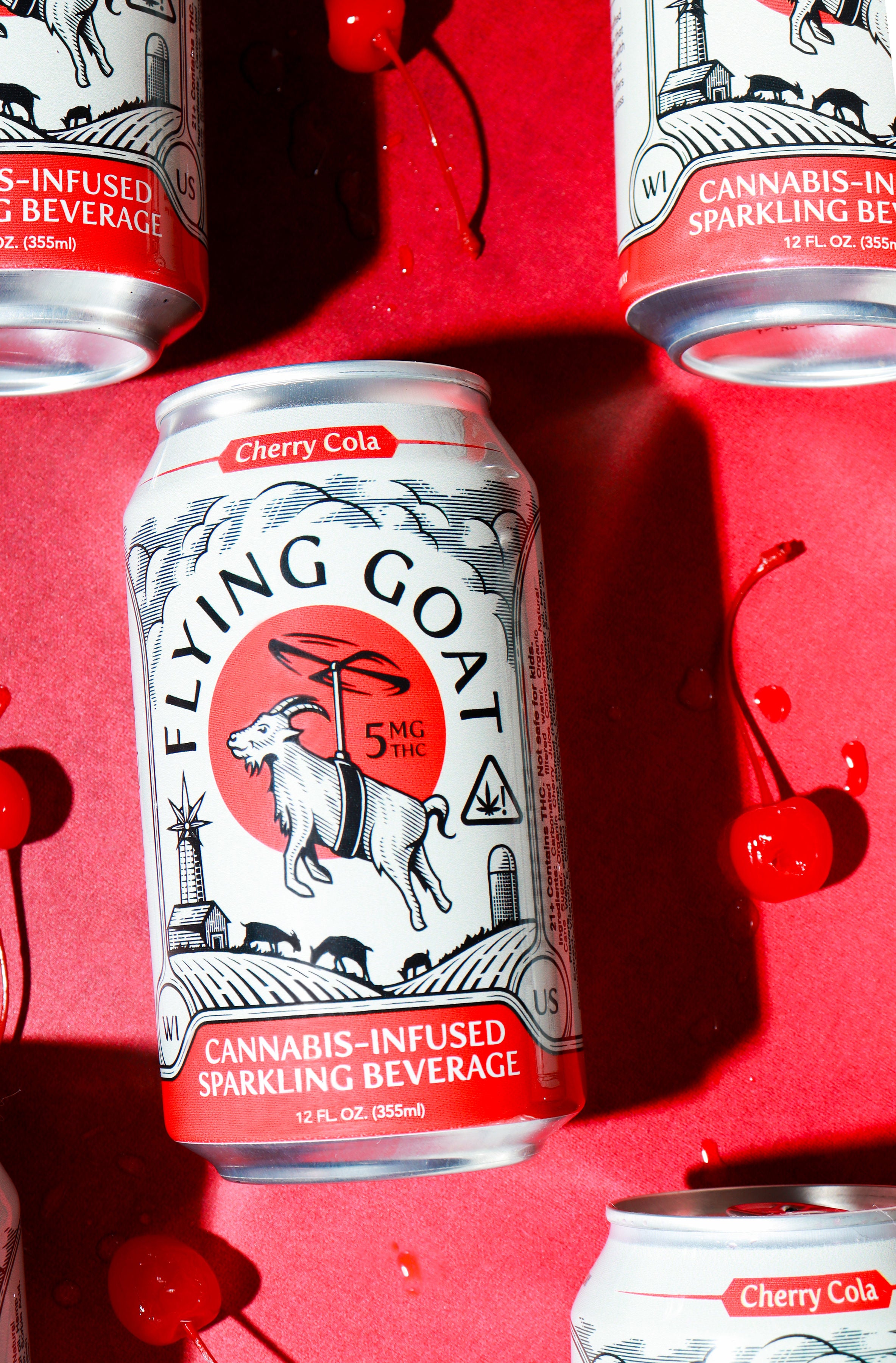 Wondering where our name came from? Well... on our way back to Eau Claire, Wisconsin from Madison, Wisconsin where we perfected the recipe of our Cherry Cola, my wife Molly and I were bouncing names off each other. None of them stuck until we passed a goat farm on the highway and that's when we started brainstorming. We wanted the name to describe the effects from the THC, which is where "Flying" came from. And of course, we got "Goat" from the farm we passed!